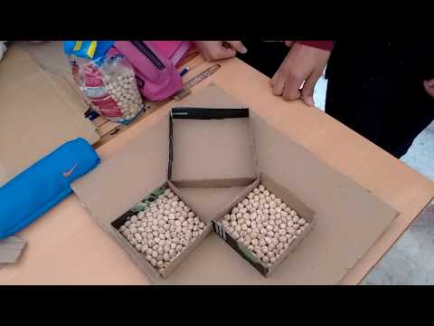 La clase de 1º ESO, desde la asignatura de Plástica, ha realizado la demostración del teorema de Pitágoras, a partir de la utilización de cartón y garbanzos. La práctica se ha realizado por parejas en tres sesiones. Como se puede ver en el video, esta es una forma sencilla de comprobar la fórmula matemática.